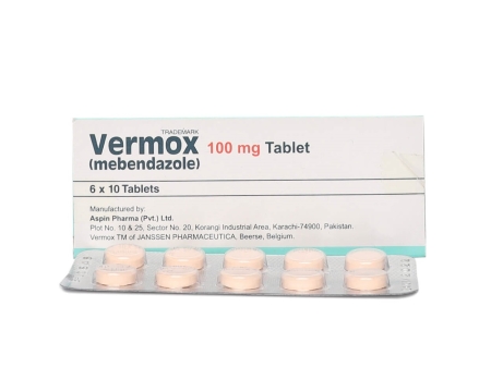 Vermox est aussi connu sous le nom de sa substance active, Mébendazole. Le médicament est disponible sous forme de comprimés destinés à la prise orale.